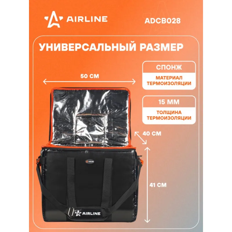 Сумка-холодильник (термосумка) "BIG SIZE", 80 л, 50*41*40 см, вертикальная, черная Описание: Сумка холодильник термосумка 80 л "BIG SIZE", 50*41*40 см AIRLINE ADCB028 - это надежное средство для обеспечения необходимой температуры и поддержания ее на протяжении длительного периода времени при транспортировки продуктов в автомобиле. Сохранение температуры происходит из-за применяемых в составе изделия теплоизолирующих материалов, в который входят брезент, вспененный полиэтилен, а также водонепроницаемая PEVA пленка. Сумка имеет кубической форму, что позволяет использовать ее не только для хранения продуктов, но и для перевозки oбъемных вещей. Полезный аксессуар, который позволит сохранить необходимую температуру (холод или тепло) в течение длительного времени - 30 ч. Особенности: *Сумка объемом 80 л; *Удобные ручки для переноски. *Полностью герметичная модель, водонепроницаемая. *Материалы: Брезент, спонж 15 мм, фольгированный материал, пластик; Эстетичный аксессуар - летняя сумка для перевозки продуктов питания и набора посуды для пикника. Это незаменимая вещь для отдыха на природе, дорожный органайзер, который можно наполнить продуктами и напитками для пикника на свежем воздухе, также подходит для перевозки лекарств. Термосумку холодильник можно использовать для контейнеров с горячим обедом или ужином, ланчем, продуктами, бутылочек с детским питанием. Термосумка AIRLINE - это главный аксессуар автомобильного, дачного, пляжного, туристического отдыха, для похода, для кемпинга, для дачи, в дорогу. Практичное приобретение для семей с детьми, взрослых мужчин и женщин, девушек и парней, которые любят отдых на природе. Термостойкий качественный контейнер - это отличный подарок для жены, мужа, папы, мамы, лучшего друга или подруги на день рождения, юбилей, 8 Марта и 23 Февраля, Новый год. Характеристики: Артикул: ADCB028 Грузоподъемность, кг: 25 Время сохранения температуры, ч: 30 Объем, л: 80 Длина, мм: 500 Ширина, мм: 400 Высота, мм: 410 Толщина термоизоляции, мм: 15 Материал термоизоляции: спонж Температура использования, С: -40/+60 Водонепроницаемость: да Комплектация: Сумка - 1 шт ПЭ пакет вкладышем - 1 шт Гарантия: от 1 года.