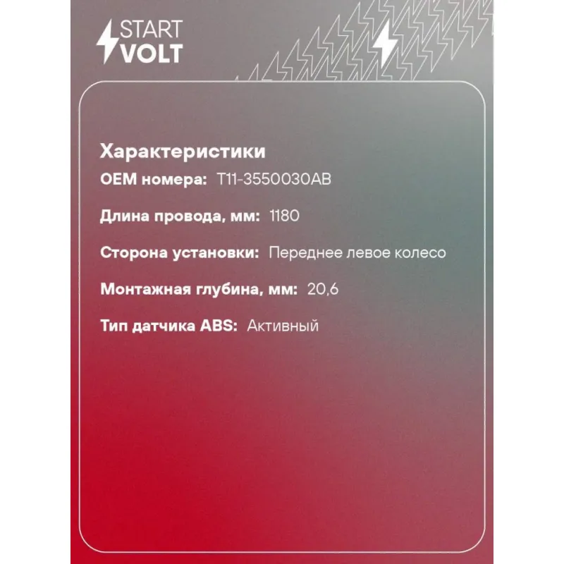 Датчик ABS для автомобилей Chery Tiggo T11 (06-) 4х2 переднего левого колеса Характеристики: Артикул: VS-ABS 2705 OEM номера: T11-3550030AB Сторона установки: Переднее левое колесо Длина провода, мм: 1180 Тип датчика ABS: Активный Монтажная глубина, мм: 20.6 Подходит для авто: Chery Tiggo (T11) (06-) Для проверки применяемости отправьте VIN автомобиля через вкладку "Есть вопросы о товаре?" Комплектация: Датчик ABS - 1 шт Паспорт изделия/гарантийный талон - 1 шт Гарантия: от 1 года.