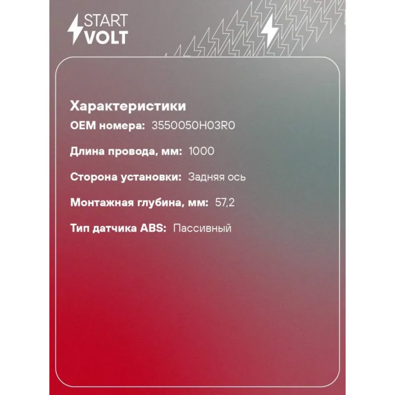 Датчик ABS для автомобилей DongFeng GX (22-) задний прямой 1000мм Характеристики: Артикул: VS-ABS 2804 OEM номера: 3550050H03R0 Длина провода, мм: 1000 Сторона установки: Задняя ось Монтажная глубина, мм: 57.2 Тип датчика ABS: Пассивный Комплектация: Паспорт изделия/гарантийный талон - 1 шт Датчик ABS - 1 шт Смазка литиевая м... Читать полностью →