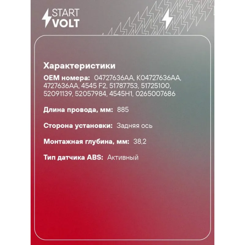 Датчик ABS для автомобилей FIAT Ducato (06-)/Peugeot Boxer (06-)/Citroen Jumper (06-) заднего левого/правого колеса Характеристики: Артикул: VS-ABS 1681 OEM номера: 04727636AA, K04727636AA, 4727636AA, 4545 F2, 51787753, 51725100, 52091139, 52057984, 4545H1, 0265007686 Подходящий разъем AIRLINE:: AECC022, AECC281 Сторона установки: Задняя ось Длина провода, мм: 885 Тип датчика ABS: Активный Монтажная глубина, мм: 38.2 Подходит для авто: Citroen Jumper (06-), Jumper (06-) Peugeot Boxer (06-), Boxer (06-) Fiat Ducato III (06-), Ducato III (06-) Для проверки применяемости отправьте VIN автомобиля через вкладку "Есть вопросы о товаре?" Комплектация: Датчик ABS - 1 шт Паспорт изделия/гарантийный талон - 1 шт Гарантия: от 1 года.