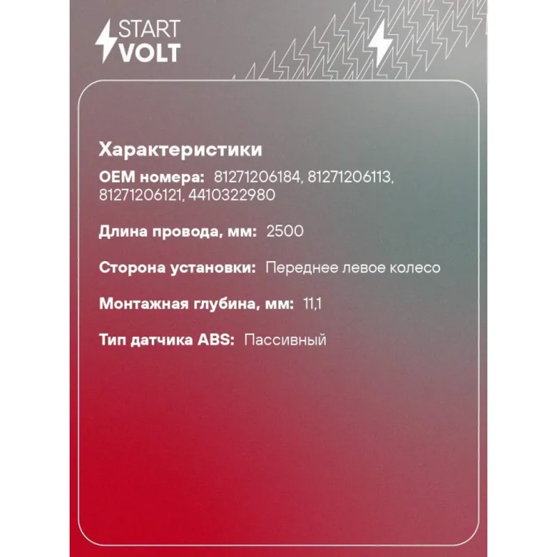 Датчик ABS для автомобилей MAN TGS (05-)/TGA (99-) переднего левого колеса Характеристики: Артикул: VS-ABS 1614 OEM номера: 81271206184, 81271206113, 81271206121, 4410322980 Длина провода, мм: 2500 Сторона установки: Переднее левое колесо Монтажная глубина, мм: 11,1 Тип датчика ABS: Пассивный Комплектация: Датчик ABS - 1 шт П... Читать полностью →