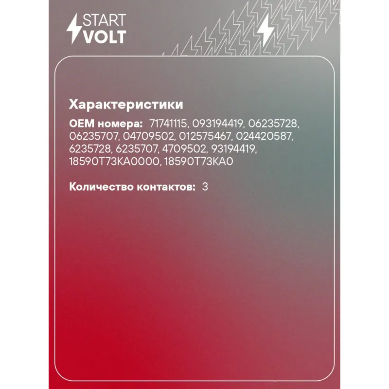 | Количество на автомобиль | 1 |