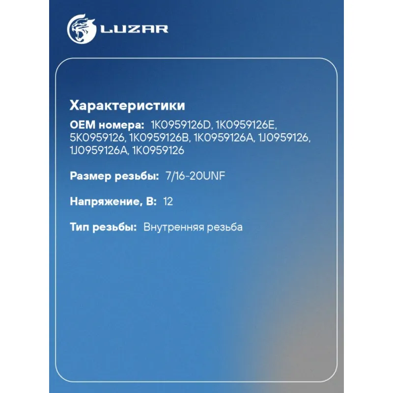 Датчик давления хладагента для автомобилей VW Polo Sedan (11-)/Skoda Rapid (13-) Характеристики: Артикул: LRPS 1801 OEM номера: 1K0959126D, 1K0959126E, 5K0959126, 1K0959126B, 1K0959126A, 1J0959126, 1J0959126A, 1K0959126 Размер резьбы: 7/16-20UNF Напряжение, В: 12 Тип резьбы: Внутренняя резьба Количество на автомобиль: 1 Подходящий разъем AIRLINE:: AECC300 Подходит для авто: Volkswagen Amarok (09-), Polo Sedan (RUS) (10-), Tiguan (08-), Jetta (11-), Golf VI (08-), Transporter T5 (03-), Amarok (09-), Polo Sedan (RUS) (10-), Passat B7 (10-), Golf VI (08-), Golf V (03-), Passat B6 (05-), Transporter T5 (03-) Skoda Octavia A5 (04-), Rapid (12-), Fabia II (07-), Yeti (09-), Octavia A5 (04-), Rapid (12-), Fabia II (07-), Yeti (09-) Audi Q7 (06-), Q3 (11-), Q3 (11-) Для проверки применяемости отправьте VIN автомобиля через вкладку "Есть вопросы о товаре?" Комплектация: Датчик давления хладагента Гарантия: от 1 года.