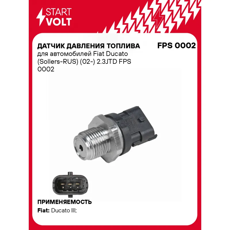 Датчик давления топлива для автомобилей Fiat Ducato (Sollers-RUS) (02-) 2.3JTD Характеристики: Артикул: FPS 0002 OEM номера: 1408233, 1408346, 2831362, 3230182500, 504053982, 04216218, 04216717, 421 6218, 421 6717, 21407309, 7421407309, 7421455919, 2R0 919 081 D, 0281002903, 0281002472, 0281006053, 2831362, 2 831 362, 3 947 258 Входное напряжение:: 5 Резьба: M18x1,5 Рабочее давление, бар: 1800 Количество на автомобиль: 1 Подходит для авто: Fiat Ducato III (06-) Для проверки применяемости отправьте VIN автомобиля через вкладку "Есть вопросы о товаре?" Комплектация: Датчик давления топлива - 1 шт Паспорт изделия/гарантийный талон - 1 шт Гарантия: от 1 года.