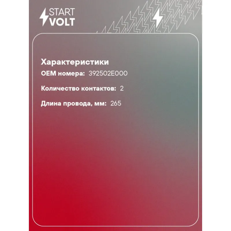 Датчик детонации для автомобилей KIA Sportage (15-)/Hyundai Creta (16-)/Tucson (15-) 2.0i Характеристики: Артикул: VS-KS 0802 OEM номера: 392502E000 Количество контактов: 2 Длина провода, мм: 265 Диаметр отверстия, мм: 8,5 Количество на автомобиль: 1 Комплектация: Датчик детонации - 1 шт Паспорт изделия/гарантийный талон - 1 ... Читать полностью →