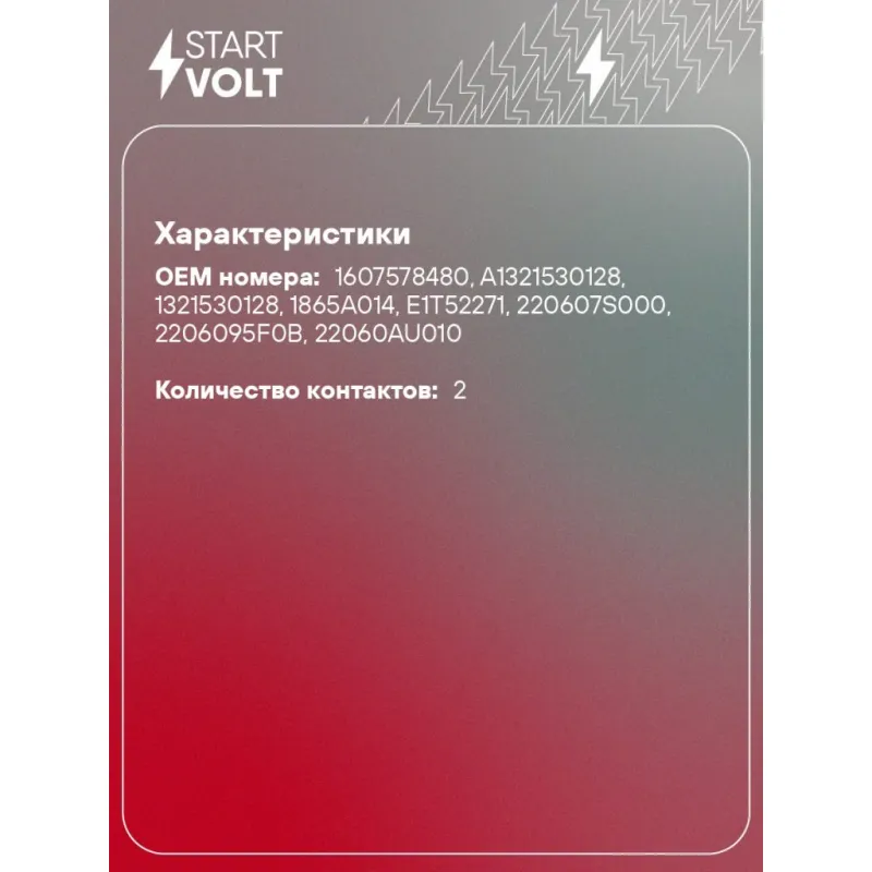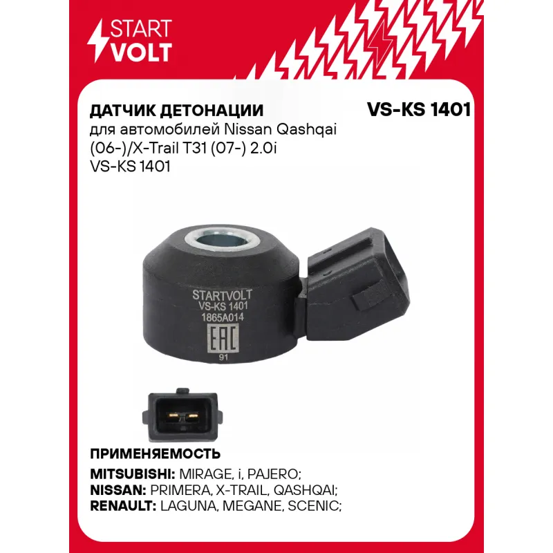 Датчик детонации для автомобилей Nissan Qashqai (06-)/X-Trail T31 (07-) 2.0i Характеристики: Артикул: VS-KS 1401 OEM номера: 1607578480, A1321530128, 1321530128, 1865A014, E1T52271, 220607S000, 2206095F0B, 22060AU010 Количество контактов: 2 Диаметр отверстия, мм: 8,5 Количество на автомобиль: 1 Комплектация: Датчик детонации - 1 шт Паспорт изделия/гарантийный талон - 1 шт Гарантия: от 1 года.