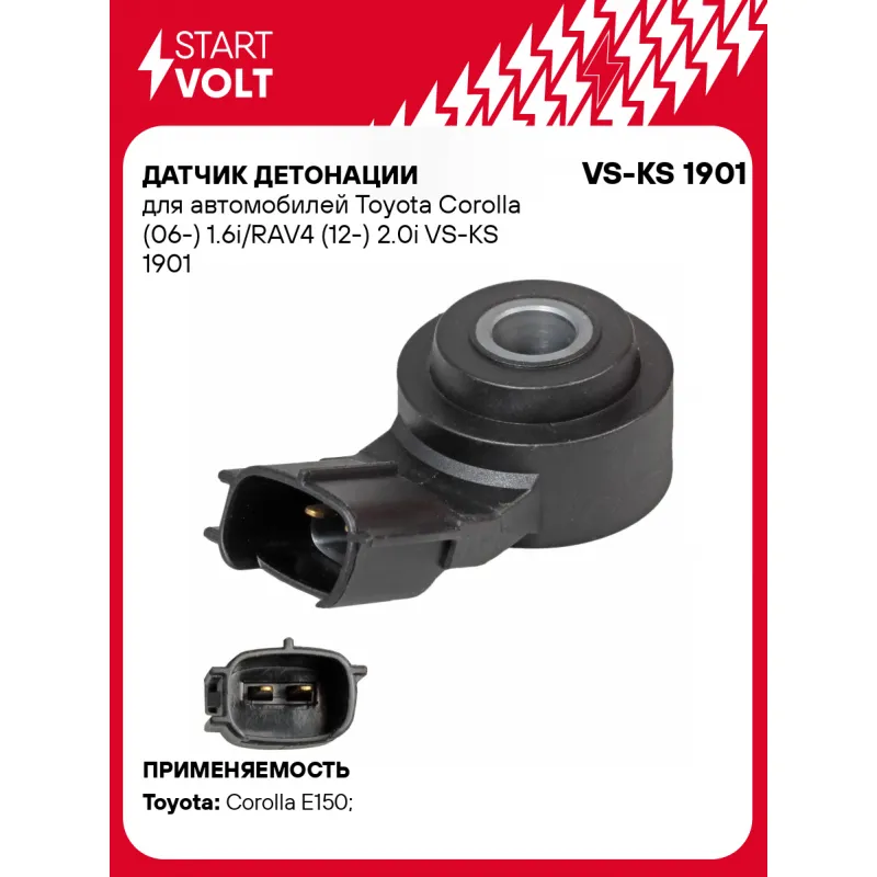 Датчик детонации для автомобилей Toyota Corolla (06-) 1.6i/RAV4 (12-) 2.0i Характеристики: Артикул: VS-KS 1901 OEM номера: 89615-02020, 89615-20090, 89615-06010 Количество контактов: 2 Диаметр отверстия, мм: 8.5 Количество на автомобиль: 1 Подходящий разъем AIRLINE:: AECC065 Подходит для авто: Toyota Corolla E150 (06-) Для проверки применяемости отправьте VIN автомобиля через вкладку "Есть вопросы о товаре?" Комплектация: Датчик детонации - 1 шт Паспорт изделия/гарантийный талон - 1 шт Гарантия: от 1 года.