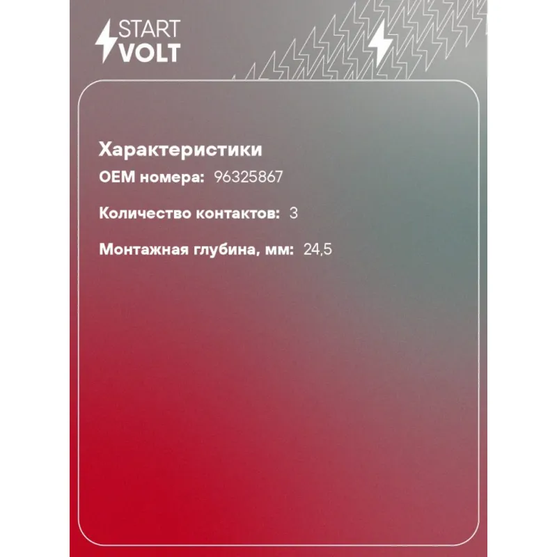Датчик фазы для автомобилей Daewoo Matiz (98-) 0.8i/1.0i Характеристики: Артикул: VS-CM 0503 OEM номера: 96325867 Количество контактов: 3 Монтажная глубина, мм: 24,5 Количество на автомобиль: 1 Комплектация: Датчик фаз - 1 шт Паспорт изделия/гарантийный талон - 1 шт Гарантия: от 1 года.