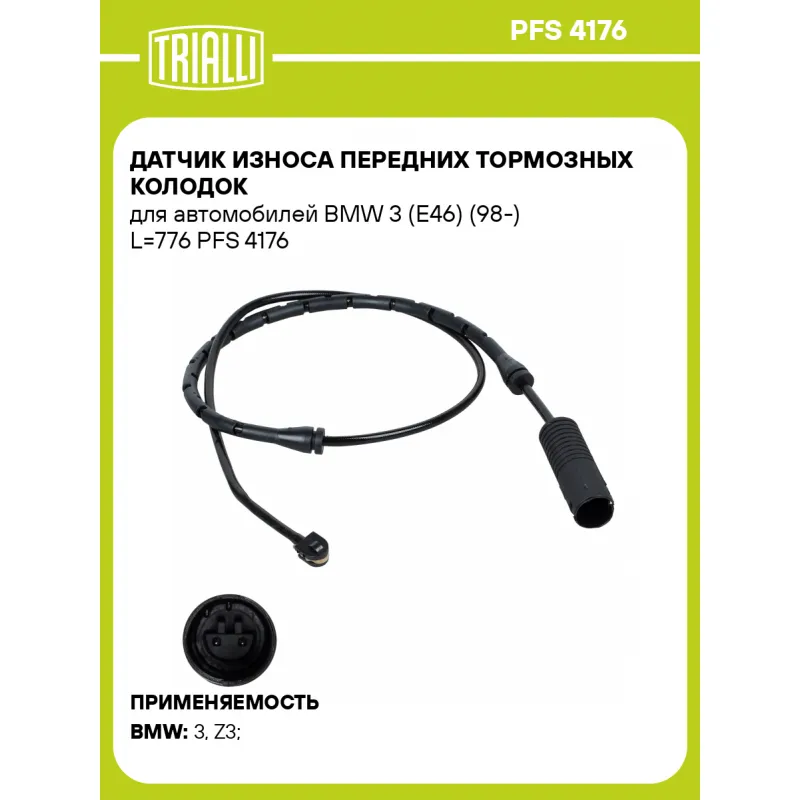Датчик износа передних тормозных колодок для автомобилей BMW 3 (E46) (98-) L=776 Характеристики: Артикул: PFS 4176 OEM номера: 34351181337, 34351181338 Длина, мм: 776 Необходимое количество: 1 на ось Количество на автомобиль: 1 Сопутствующие товары:: PF 4176 Сторона установки: Передняя ось Гарантийный срок: 1 год / 30 000 км Товарная линейка: BLACK Комплектация: Датчик износа - 1 шт Гарантия: от 1 года.