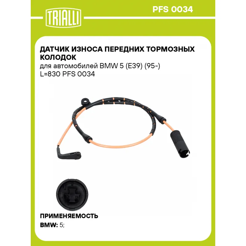 Датчик износа передних тормозных колодок для автомобилей BMW 5 (E39) (95-) L=830 Характеристики: Артикул: PFS 0034 OEM номера: 34351163065, 34352229018 Длина, мм: 830 Сторона установки: Передняя ось Необходимое количество: 1 на ось Количество на автомобиль: 1 Гарантийный срок: 1 год / 30.000 км Товарная линейка: BLACK Комплектация: Датчик износа - 1 шт Гарантия: от 1 года.