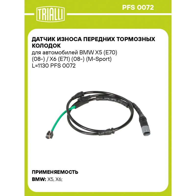 Датчик износа передних тормозных колодок для автомобилей BMW X5 (E70) (08-) / X6 (E71) (08-) (M-Sport) L=1130 Характеристики: Артикул: PFS 0072 OEM номера: 34356792568 Длина, мм: 1130 Сторона установки: Передняя ось Необходимое количество: 1 на ось Количество на автомобиль: 1 Гарантийный срок: 1 год / 30.000 км Товарная линейка: BLACK Комплектация: Датчик износа - 1 шт Гарантия: от 1 года.