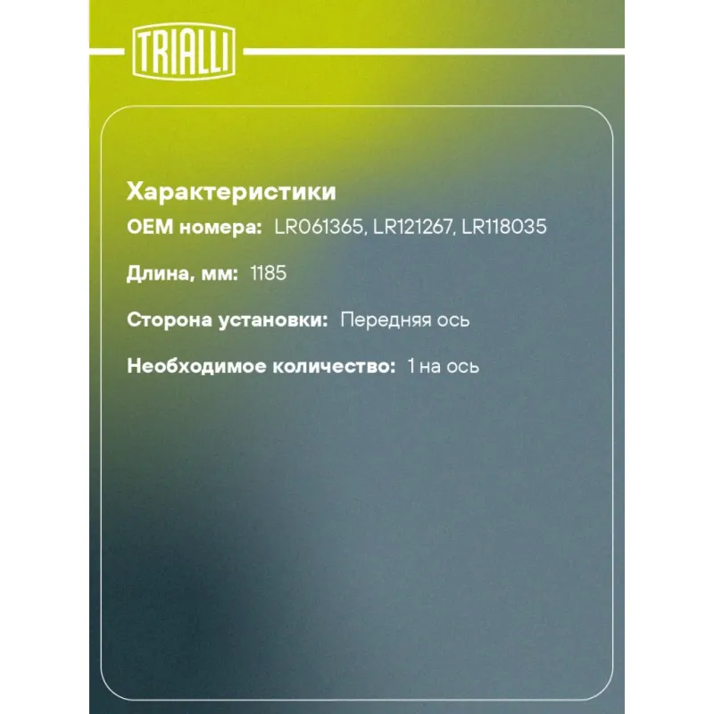| Количество на автомобиль | 1 |
