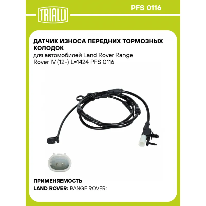Датчик износа передних тормозных колодок для автомобилей Land Rover Range Rover IV (12-) L=1424 Характеристики: Артикул: PFS 0116 OEM номера: LR033275 Длина, мм: 1424 Сторона установки: Передняя ось Необходимое количество: 1 на ось Количество на автомобиль: 1 Гарантийный срок: 1 год / 30.000 км Товарная линейка: BLACK Комплектация: Датчик износа - 1 шт Гарантия: от 1 года.