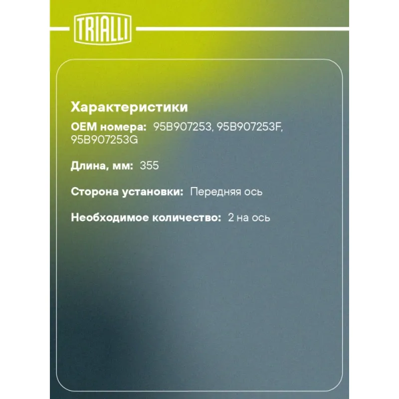 | Количество на автомобиль | 2 |