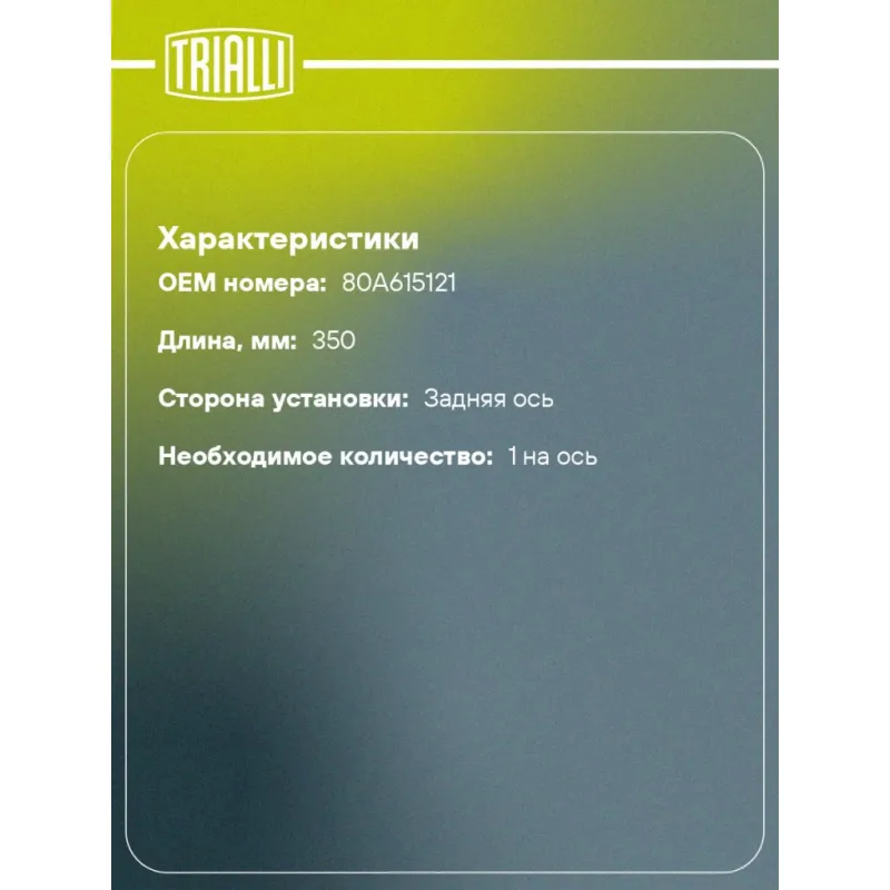 | Количество на автомобиль | 1 |