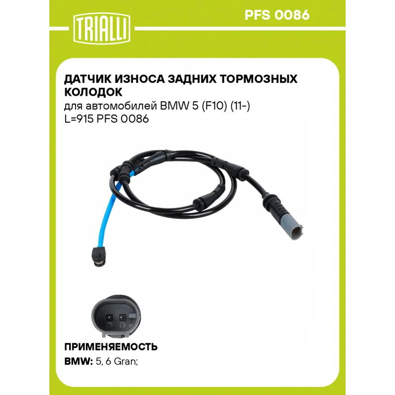 Датчик износа задних тормозных колодок для автомобилей BMW 5 (F10) (11-) L=915 Характеристики: Артикул: PFS 0086 OEM номера: 34356791962 Длина, мм: 915 Сторона установки: Задняя ось Необходимое количество: 1 на ось Количество на автомобиль: 1 Гарантийный срок: 1 год / 30.000 км Товарная линейка: BLACK Комплектация: Датчик износа - 1 шт Гарантия: от 1 года.