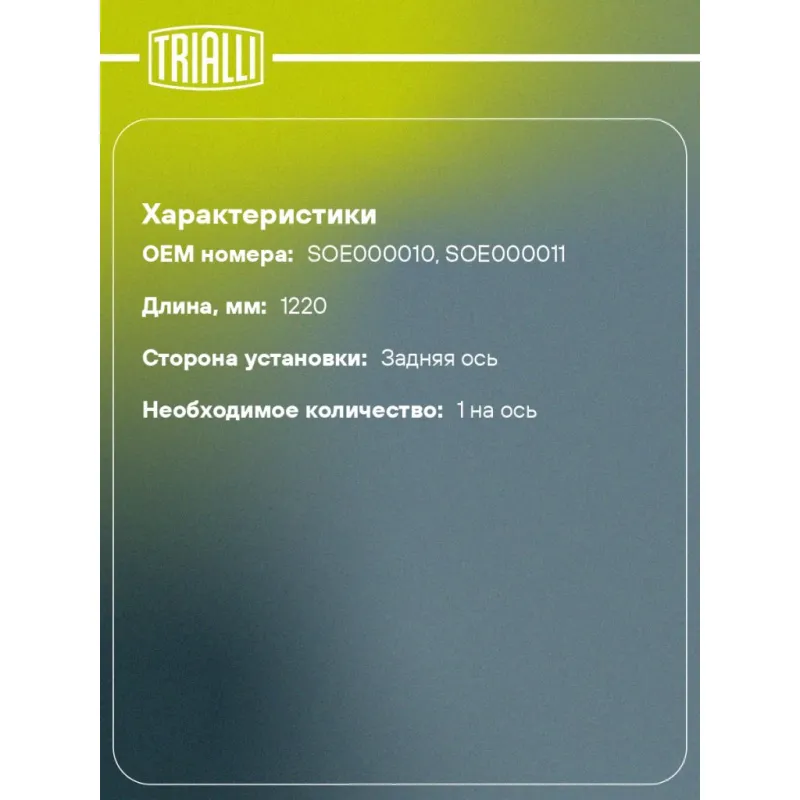 | Количество на автомобиль | 1 |