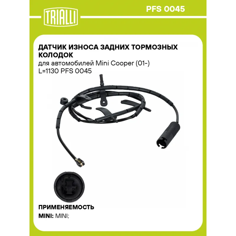 Датчик износа задних тормозных колодок для автомобилей Mini Cooper (01-) L=1130 Характеристики: Артикул: PFS 0045 OEM номера: 34356761448 Длина, мм: 1130 Сторона установки: Задняя ось Необходимое количество: 1 на ось Количество на автомобиль: 1 Гарантийный срок: 1 год / 30.000 км Товарная линейка: BLACK Комплектация: Датчик износа - 1 шт Гарантия: от 1 года.