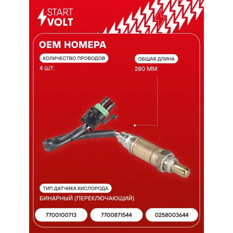 Датчик кислорода для автомобилей АЗЛК 2141 Москвич (97-) 2.0i (F3R272 Renault) до катализатора Характеристики: Артикул: VS-OS 0200 OEM номера: 7700100713, 7700871544, 0258003644 Общая длина, мм: 280 Количество проводов: 4 Тип датчика кислорода: Бинарный (переключающий) Количество на автомобиль: 1 Сопротивление нагревателя, Ом: 3,6 Комплектация: Датчик кислорода - 1 шт Паспорт изделия/гарантийный талон - 1 шт Гарантия: от 1 года.