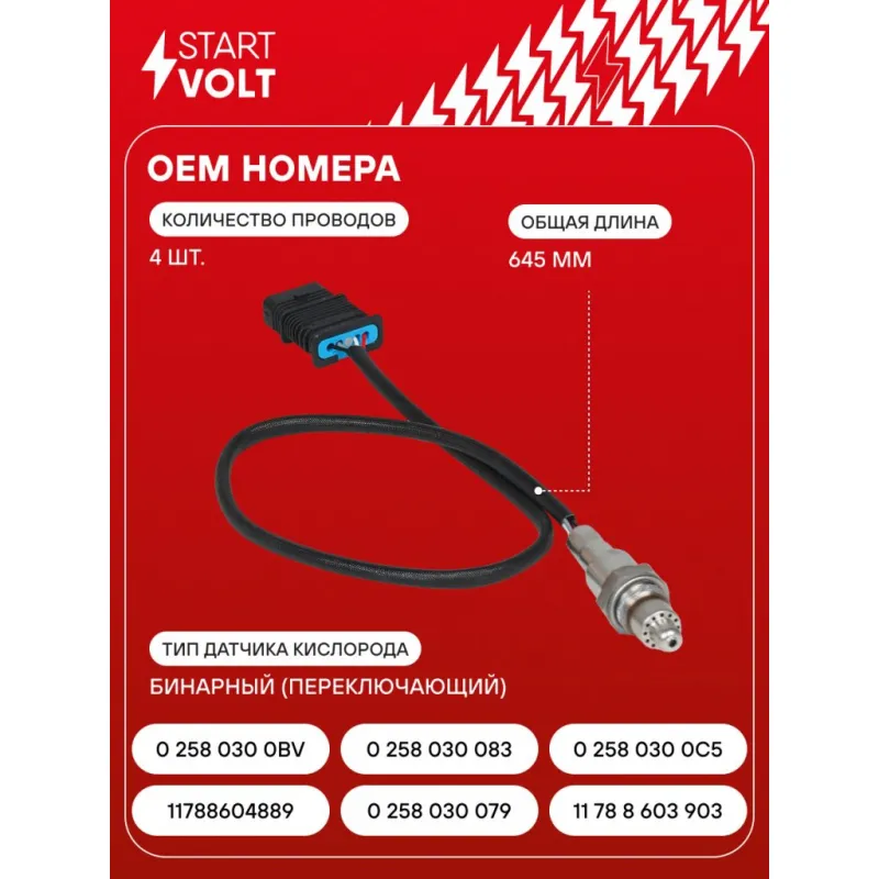 Датчик кислорода для автомобилей BMW X1 F48 (15-)/X2 F39 (17-) 1.5i/2.0i после катализатора Характеристики: Артикул: VS-OS 2620 OEM номера: 11788604889, 0 258 030 079, 11 78 8 603 903, 0 258 030 0BV, 0 258 030 083, 0 258 030 0C5 Количество на автомобиль: 1 Тип датчика кислорода: Бинарный (переключающий) Общая длина, мм: 645 Количество проводов: 4 Подходит для авто: BMW X1 F48 (15-), X2 F39 (17-) Mini Countryman (16-) Для проверки применяемости отправьте VIN автомобиля через вкладку "Есть вопросы о товаре?" Комплектация: Паспорт изделия/гарантийный талон - 1 шт Кислородный датчик - 1 шт Гарантия: от 1 года.