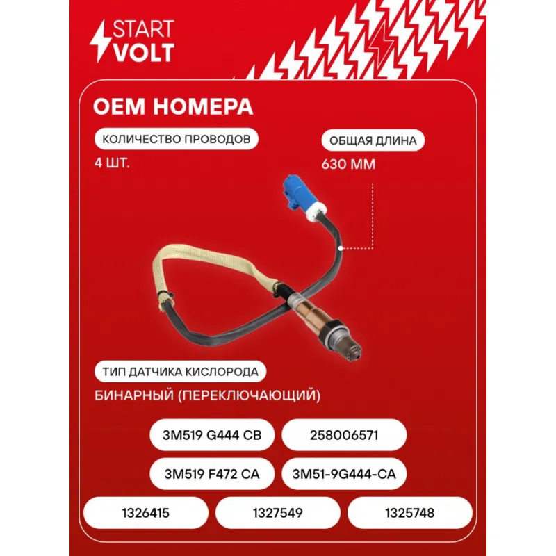 Датчик кислорода для автомобилей Ford Focus II (05-) 1.6i после катализатора 630 мм Характеристики: Артикул: VS-OS 1081 OEM номера: 1326415, 1327549, 1325748, 3M519 F472 CA, 3M51-9G444-CA, 3M519 G444 CB, 0258006571 Количество на автомобиль: 1 Тип датчика кислорода: Бинарный (переключающий) Общая длина, мм: 630 Количество проводов: 4 Подходит для авто: Ford C-Max (11-), C-Max (03-), Focus II (05-), Focus III (11-) Для проверки применяемости отправьте VIN автомобиля через вкладку "Есть вопросы о товаре?" Комплектация: Датчик кислорода - 1 шт Паспорт изделия/гарантийный талон - 1 шт Гарантия: от 1 года.