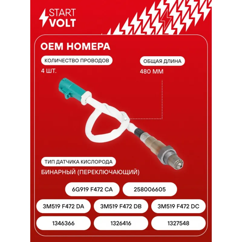 Датчик кислорода для автомобилей Ford Focus III (10-) 1.6i/Focus II (05-) 1.4i/1.6i до катализатора 480 мм Характеристики: Артикул: VS-OS 1000 OEM номера: 1346366, 1326416, 1327548, 3M519 F472 DA, 3M519 F472 DB, 3M519 F472 DC, 6G919 F472 CA, 0258006605, 0 258 986 777 Количество на автомобиль: 1 Тип датчика кислорода: Бинарный (переключающий) Общая длина, мм: 480 Количество проводов: 4 Подходит для авто: Ford C-Max (11-), Focus II (05-), Focus III (11-), Mondeo IV (07-) Volvo V50 (04-), S40 (04-) Для проверки применяемости отправьте VIN автомобиля через вкладку "Есть вопросы о товаре?" Комплектация: Датчик кислорода - 1 шт Паспорт изделия/гарантийный талон - 1 шт Гарантия: от 1 года.