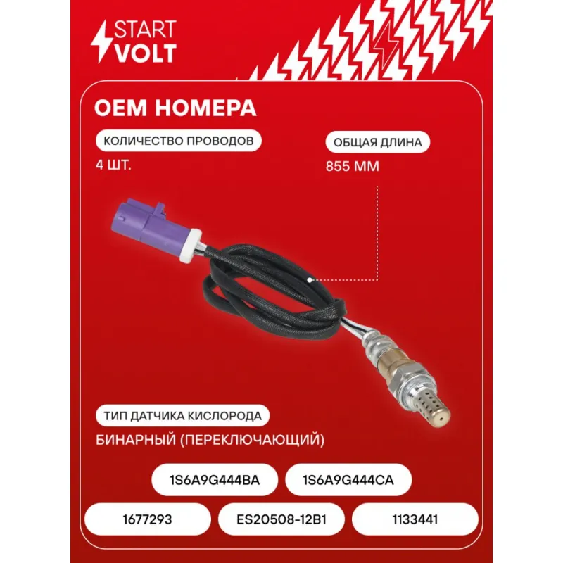 Датчик кислорода для автомобилей Ford Fusion (02-)/Fiesta (02-) 1.6i после катализатора Характеристики: Артикул: VS-OS 1008 OEM номера: 1677293, 1133441, 1S6A9G444BA, 1S6A9G444CA, 0258005717, ES20508-12B1 Количество на автомобиль: 1 Тип датчика кислорода: Бинарный (переключающий) Общая длина, мм: 855 Количество проводов: 4 Подходит для авто: Ford Fusion (02-), Fiesta V (02-), Fiesta IV (95-) Для проверки применяемости отправьте VIN автомобиля через вкладку "Есть вопросы о товаре?" Комплектация: Паспорт изделия/гарантийный талон - 1 шт Датчик кислорода - 1 шт Гарантия: от 1 года.