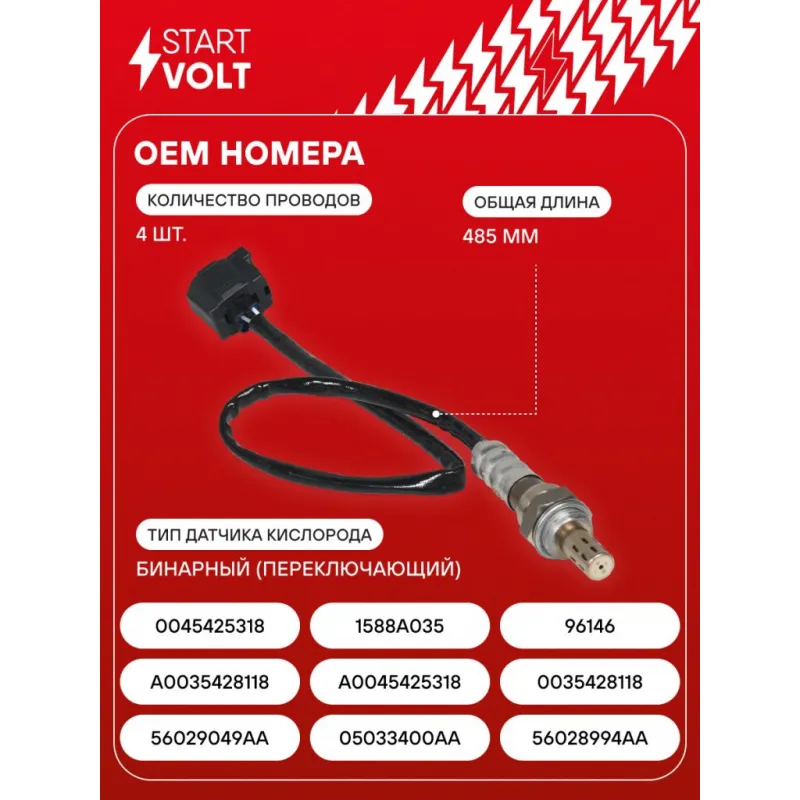 Датчик кислорода для автомобилей ГАЗ 31105 (03-)/3102 (92-)/Volga Siber (08-) двигатель Chrysler 2.4i Характеристики: Артикул: VS-OS 0301 OEM номера: 56029049AA, 05033400AA, 56028994AA, A0035428118, A0045425318, 0035428118, 0045425318, 1588A035, 96146, 0 258 986 774 Количество на автомобиль: 1 Тип датчика кислорода: Бинарный (переключающий) Общая длина, мм: 485 Количество проводов: 4 Сопротивление нагревателя, Ом: 3,5 Подходит для авто: ГАЗ Volga Siber (08-), 2310, 31105, Gazelle, 2217, 2752, 2705, 3302, 3221 Jeep Cherokee KL (13-), Grand Cherokee (99-) Mercedes-Benz A-Class W169 (04-) Smart Fortwo (07-) Chrysler Voyager IV (01-) Для проверки применяемости отправьте VIN автомобиля через вкладку "Есть вопросы о товаре?" Комплектация: Кислородный датчик - 1 шт Паспорт изделия/гарантийный талон - 1 шт Гарантия: от 1 года.
