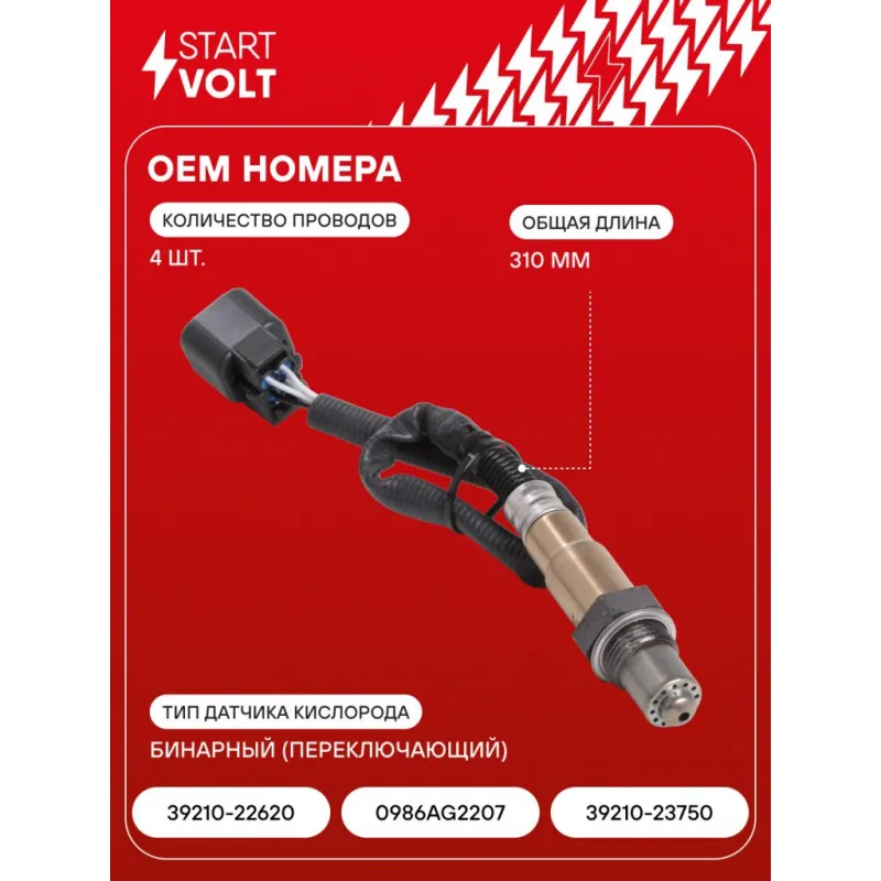 Датчик кислорода для автомобилей Hyundai Accent II (Tagaz) (01-) 1.5i/Tucson (04-) 2.0i после катализатора Характеристики: Артикул: VS-OS 0818 OEM номера: 39210-22620, 39210-23750, 0986AG2207 Количество на автомобиль: 1 Подходящий разъем AIRLINE:: AECC038, AECC287 Тип датчика кислорода: Бинарный (переключающий) Общая длина, мм: 310 Количество проводов: 4 Подходит для авто: Kia Cerato I (04-) Hyundai Elantra III (00-), Tucson I (04-), Accent II (99-), Accent II (TagAZ) (01-) Для проверки применяемости отправьте VIN автомобиля через вкладку "Есть вопросы о товаре?" Комплектация: Паспорт изделия/гарантийный талон - 1 шт Датчик кислорода - 1 шт Гарантия: от 1 года.