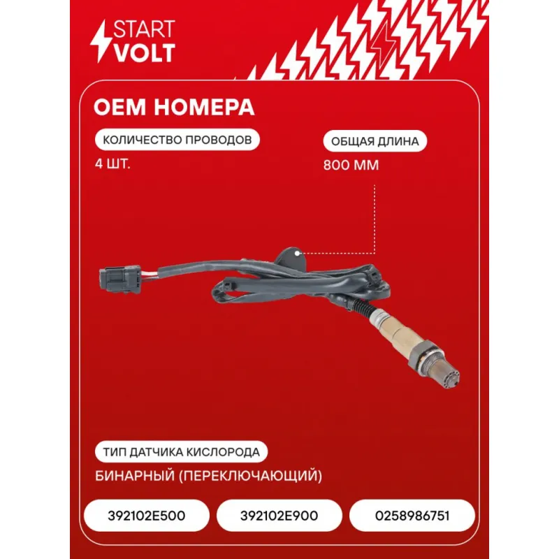Датчик кислорода для автомобилей Hyundai i40 (11-) 2.0i/Elantra (11-) 1.8i после катализатора Характеристики: Артикул: VS-OS 0833 OEM номера: 392102E500, 392102E900, 0258986751 Общая длина, мм: 800 Количество проводов: 4 Тип датчика кислорода: Бинарный (переключающий) Количество на автомобиль: 1 Подходит для авто: Hyundai i40 (11-), Elantra V (11-) Для проверки применяемости отправьте VIN автомобиля через вкладку "Есть вопросы о товаре?" Комплектация: Датчик кислорода - 1 шт Паспорт изделия/гарантийный талон - 1 шт Гарантия: от 1 года.