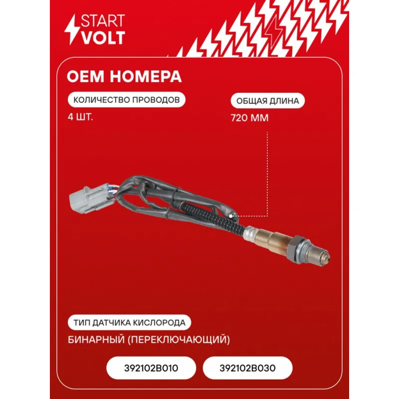 Датчик кислорода для автомобилей Hyundai Elantra (06-)/KIA Ceed (06-) 1.4i/1.6i после катализатора Характеристики: Артикул: VS-OS 0824 OEM номера: 392102B010, 392102B030 Количество на автомобиль: 1 Тип датчика кислорода: Бинарный (переключающий) Общая длина, мм: 720 Количество проводов: 4 Подходит для авто: Kia CEE'D (07-), Cerato I (04-) Hyundai i30 I (07-), Elantra IV (06-) Для проверки применяемости отправьте VIN автомобиля через вкладку "Есть вопросы о товаре?" Комплектация: Датчик кислорода - 1 шт Паспорт изделия/гарантийный талон - 1 шт Гарантия: от 1 года.