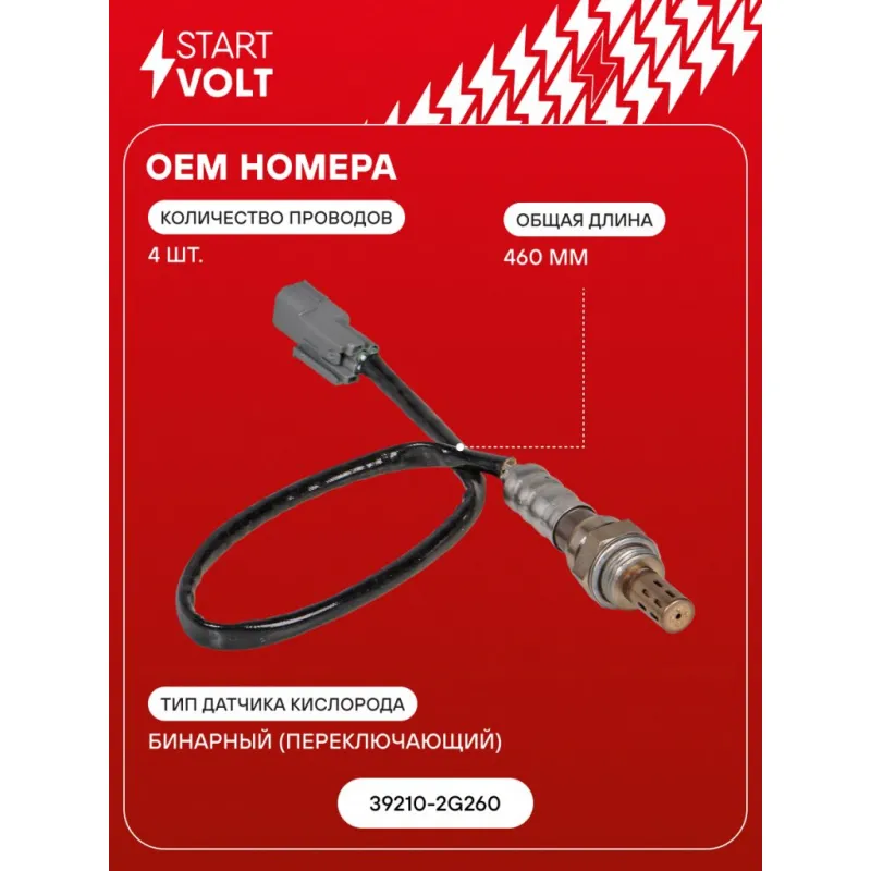 Датчик кислорода для автомобилей Hyundai Santa Fe (18-)/Sonata (14-)/Tucson (18-)/KIA Sorento(14-)/Optima (15-) 2.4i после катализатора VS-OS 0703 StartVolt
