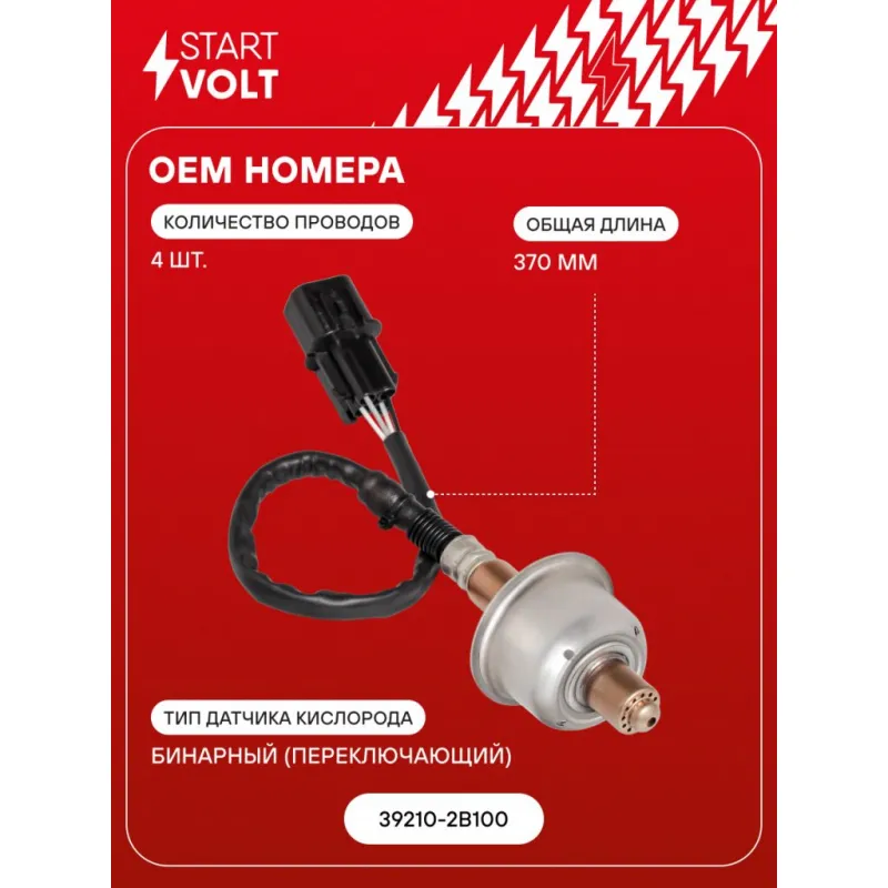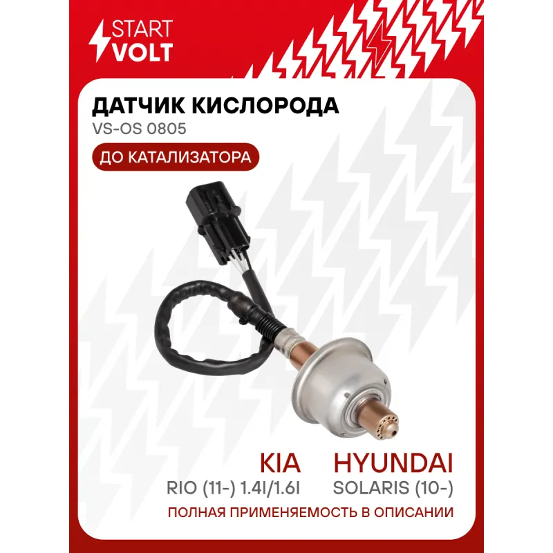 Датчик кислорода для автомобилей Hyundai Solaris (10-)/KIA Rio (11-) 1.4i/1.6i до катализатора Описание: Датчик кислорода VS-OS 0805 бренда STARTVOLT входит в состав системы управления двигателем внутреннего сгорания, представляет собой электронный датчик, который генерирует выходное напряжение постоянного тока в зависимости от изменения количества свободного кислорода, содержащегося в отработавших газах автомобильного двигателя. Тип датчика кислорода - Бинарный (переключающий); Применяемость кислородного датчика: HYUNDAI SOLARIS, KIA RIO, CEED.. Подбор по VIN-номеру вашего автомобиля - через кнопку 'Задать вопрос'. Специалист проверит применяемость и ответит вам. Действие: - показывает уровень кислорода, топлива и продуктов сгорания их смеси; - измерение уровня кислорода в выхлопных газах; - помогает оптимизировать смесь так, чтобы увеличить эффективность сгорания топлива; - повышение эффективности работы двигателя; Пользуясь качественным датчиком кислорода от бренда STARTVOLT можно избежать дорогостоящих ремонтов и продлить срок службы двигателя. Характеристики: Артикул: VS-OS 0805 OEM номера: 39210-2B100 Количество на автомобиль: 1 Подходящий разъем AIRLINE:: AECC285, AECC032 Тип датчика кислорода: Бинарный (переключающий) Общая длина, мм: 370 Количество проводов: 4 Подходит для авто: Hyundai Solaris I (10-) Kia Rio III (11-), CEE'D (07-) Для проверки применяемости отправьте VIN автомобиля через вкладку "Есть вопросы о товаре?" Комплектация: Датчик кислорода - 1 шт Паспорт изделия/гарантийный талон - 1 шт Гарантия: от 1 года.