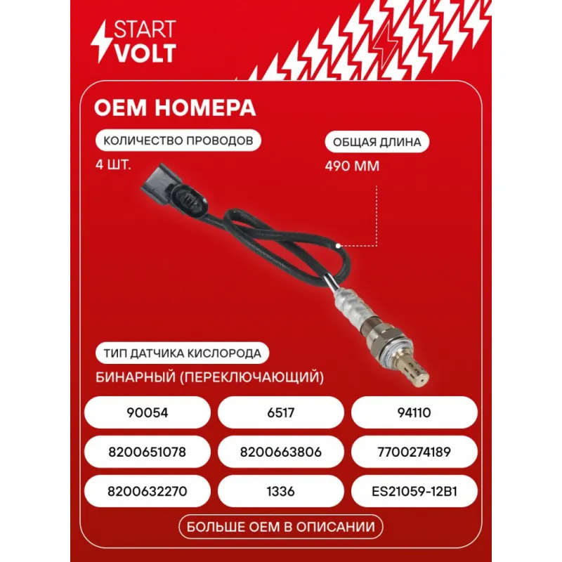 Датчик кислорода для автомобилей Лада Largus (12-) 1.6i/Renault Logan (04-) 1.4i/1.6i до катализатора оранжевый Характеристики: Артикул: VS-OS 0915 OEM номера: 8200632270, 1336, ES21059-12B1, 8200651078, 8200663806, 7700274189, 90054, 6517, 94110, 226A40713R, 90546 Количество на автомобиль: 1 Подходящий разъем AIRLINE:: AECC257, AECC025, AECC283 Тип датчика кислорода: Бинарный (переключающий) Общая длина, мм: 490 Количество проводов: 4 Сопротивление нагревателя, Ом: 3,4 Комплектация: Паспорт изделия/гарантийный талон - 1 шт Датчик кислорода - 1 шт Гарантия: от 1 года.