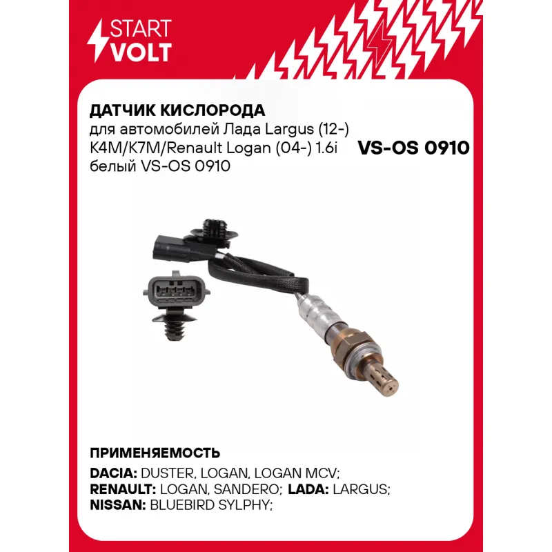 Датчик кислорода для автомобилей Лада Largus (12-) K4M/K7M/Renault Logan (04-) 1.6i белый Характеристики: Артикул: VS-OS 0910 OEM номера: 2269000QAC, 2269000Q0D, 7700109844, 8200668947, 7700103504, 6001543615, 7700875342, 368065, 0 258 986 615 Количество на автомобиль: 1 Подходящий разъем AIRLINE:: AECC257, AECC283, AECC025 Тип датчика кислорода: Бинарный (переключающий) Общая длина, мм: 375 Количество проводов: 4 Сопротивление нагревателя, Ом: 5,2 Комплектация: Паспорт изделия/гарантийный талон - 1 шт Датчик кислорода - 1 шт Гарантия: от 1 года.