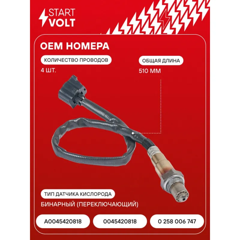 Датчик кислорода для автомобилей Mercedes-Benz M W164 (05-)/S W221 (05-)/E W212 (09-)/C W204 (07-)/GL X164 (06-)/GLK X204 (08-) 2.5i-6.2i после катализатора Характеристики: Артикул: VS-OS 1806 OEM номера: A0045420818, 0045420818, 0 258 006 747 Количество на автомобиль: 1 Тип датчика кислорода: Бинарный (переключающий) Общая длина, мм: 510 Количество проводов: 4 Подходит для авто: Mercedes-Benz C-Class W204 (07-), E-Class W211 (02-), E-Class W212 (09-), GL-Class I (X164) (06-), GLK X204 (08-), M-Class II (W164) (05-), R-Class (W251) (06-), Viano (W639) (03-), Vito (W639) (03-), S-Class W220 (98-), S-Class W221 (05-) Для проверки применяемости отправьте VIN автомобиля через вкладку "Есть вопросы о товаре?" Комплектация: Датчик кислорода - 1 шт Паспорт изделия/гарантийный талон - 1 шт Гарантия: от 1 года.