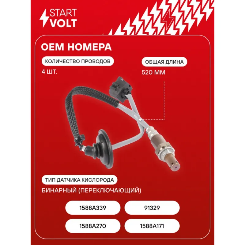 Датчик кислорода для автомобилей Mitsubishi Lancer X (07-) 1.6i/1.8i/Outlander (06-) 2.0i/2.4i/ASX (10-) 1.8i/2.0i после катализатора VS-OS 1107 StartVolt