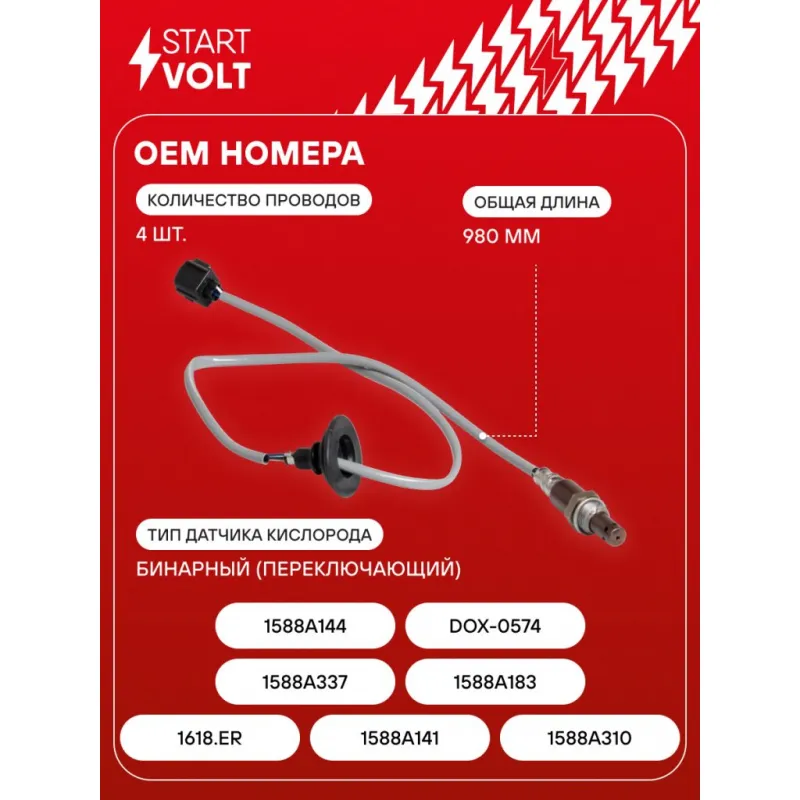 Датчик кислорода для автомобилей Mitsubishi Outlander XL (06-)/Outlander (12-) 2.0i/2.4i до катализатора Характеристики: Артикул: VS-OS 1104 OEM номера: 1618.ER, 1588A141, 1588A310, 1588A337, 1588A183, 1588A144, F 00H L00 401, DOX-0574 Количество на автомобиль: 1 Тип датчика кислорода: Бинарный (переключающий) Общая длина, мм: 980 Количество проводов: 4 Подходит для авто: Mitsubishi Outlander II (06-), Lancer X (07-), ASX (10-) Для проверки применяемости отправьте VIN автомобиля через вкладку "Есть вопросы о товаре?" Комплектация: Датчик кислорода - 1 шт Паспорт изделия/гарантийный талон - 1 шт Гарантия: от 1 года.
