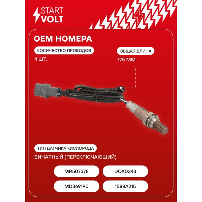Датчик кислорода для автомобилей Mitsubishi Pajero IV (06-)/Pajero Sport (97-) 3.0i до катализатора Характеристики: Артикул: VS-OS 1108 OEM номера: MD369190, 1588A215, MR507378, F00HL00167, DOX0343 Общая длина, мм: 775 Количество проводов: 4 Тип датчика кислорода: Бинарный (переключающий) Количество на автомобиль: 1 Подходит для авто: Mitsubishi Outlander II (06-), Pajero IV (06-) Для проверки применяемости отправьте VIN автомобиля через вкладку "Есть вопросы о товаре?" Комплектация: Датчик кислорода - 1 шт Паспорт изделия/гарантийный талон - 1 шт Гарантия: от 1 года.