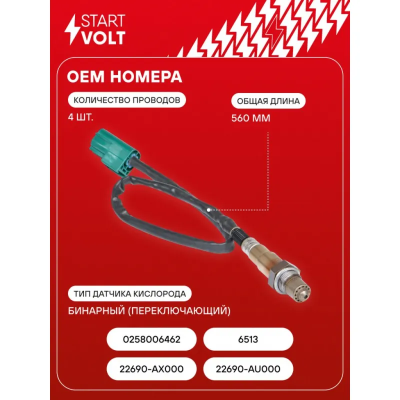 Датчик кислорода для автомобилей Nissan Almera N16 (00-) 1.5i/1.8i/Primera (02-) 1.6i/1.8i до катализатора VS-OS 1425 StartVolt