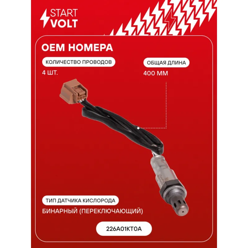 Датчик кислорода для автомобилей Nissan Juke (10-)/Qashqai (07-) 1.6i после катализатора Характеристики: Артикул: VS-OS 1415 OEM номера: 226A01KT0A Количество на автомобиль: 1 Тип датчика кислорода: Бинарный (переключающий) Общая длина, мм: 400 Количество проводов: 4 Подходит для авто: Nissan Juke (10-), Qashqai J10 (06-) Для проверки применяемости отправьте VIN автомобиля через вкладку "Есть вопросы о товаре?" Комплектация: Датчик кислорода - 1 шт Паспорт изделия/гарантийный талон - 1 шт Гарантия: от 1 года.