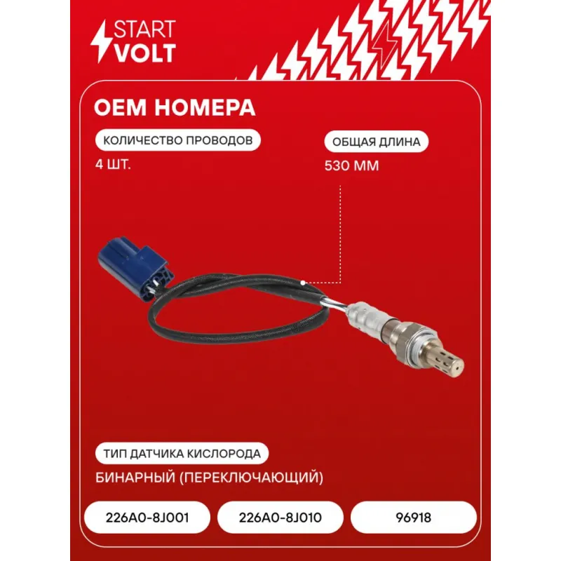 Датчик кислорода для автомобилей Nissan X-Trail T30 (01-) 2.0i/2.5i/Primera (02-) 2.0i после катализатора Характеристики: Артикул: VS-OS 1428 OEM номера: 226A0-8J001, 226A0-8J010, 96918, 0 258 986 646 Тип датчика кислорода: Бинарный (переключающий) Количество на автомобиль: 1 Общая длина, мм: 530 Количество проводов: 4 Подходит для авто: Nissan Teana J31 (02-), X-Trail T30 (01-), Primera P12 (02-) Для проверки применяемости отправьте VIN автомобиля через вкладку "Есть вопросы о товаре?" Комплектация: Датчик кислорода - 1 шт Паспорт изделия/гарантийный талон - 1 шт Гарантия: от 1 года.
