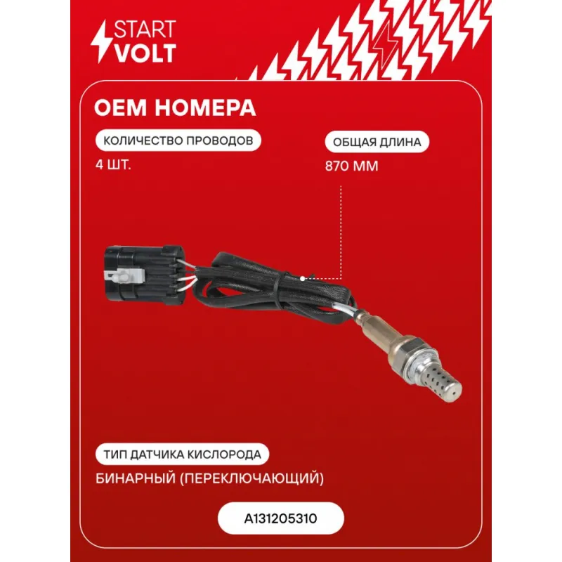 Датчик кислорода для автомобилей Omoda C5 (22-) 1.5T/Chery Very (11-) 1.5i Характеристики: Артикул: VS-OS 2710 OEM номера: A131205310 Общая длина, мм: 870 Количество проводов: 4 Тип датчика кислорода: Бинарный (переключающий) Количество на автомобиль: 1 Подходит для авто: OMODA C5 (22-) Chery Tiggo 2 (16-), Bonus (A13) (11-), Tiggo 3 (16-) Для проверки применяемости отправьте VIN автомобиля через вкладку "Есть вопросы о товаре?" Комплектация: Датчик кислорода - 1 шт Паспорт изделия/гарантийный талон - 1 шт Гарантия: от 1 года.