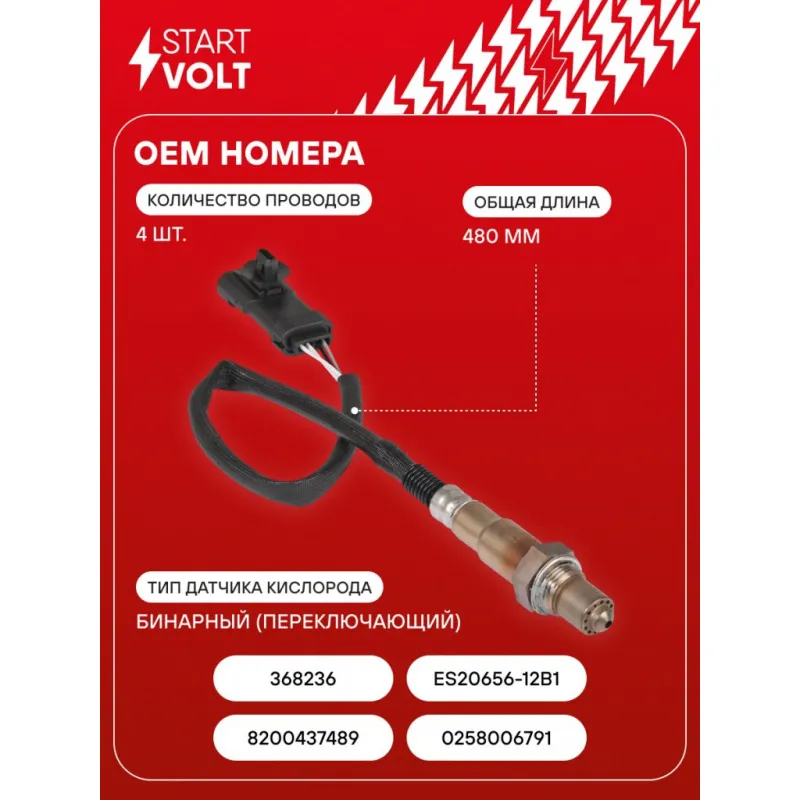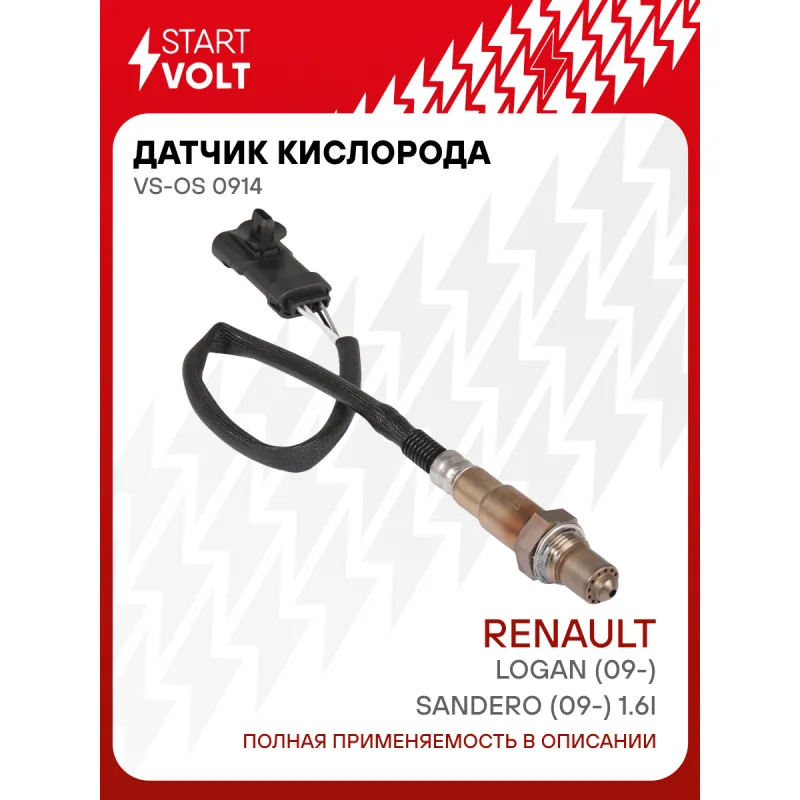 Датчик кислорода для автомобилей Renault Logan (09-)/Sandero (09-) 1.6i овальный разъем VS-OS 0914 StartVolt