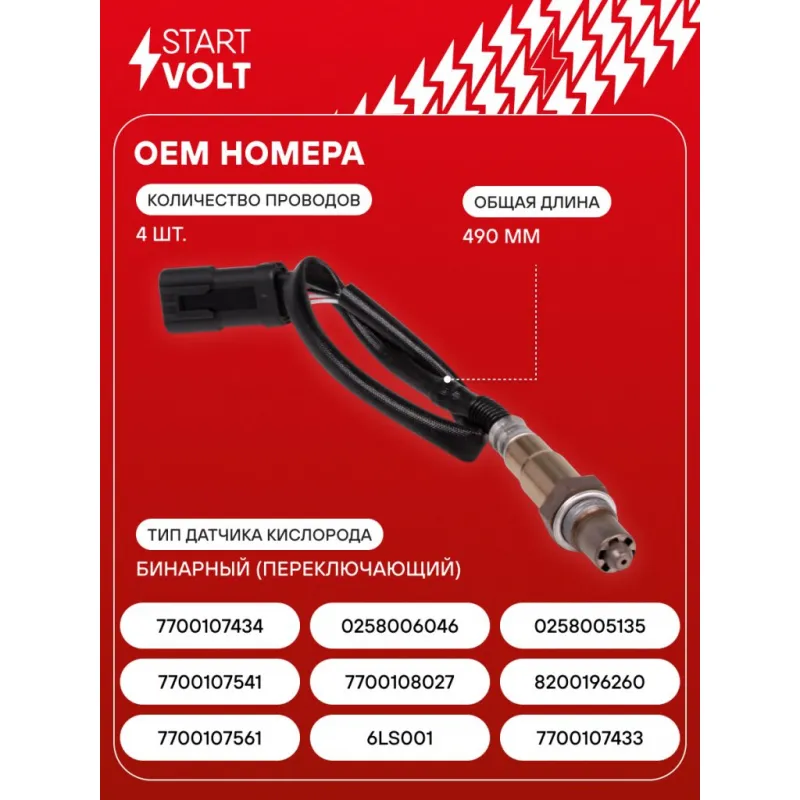 Датчик кислорода для автомобилей Renault Megane (95-)/Megane(02-)/Scenic (96-)/Scenic (03-) Характеристики: Артикул: VS-OS 0919 OEM номера: 7700107561, 6LS001, 7700107433, 7700107541, 7700108027, 8200196260, 7700107434, 0258006046, 0258005135 Количество на автомобиль: 1 Тип датчика кислорода: Бинарный (переключающий) Общая длина, мм: 490 Количество проводов: 4 Подходит для авто: Renault Scenic II (04-), Megane I (95-), Laguna I (94-), Twingo (96-), Scenic I (96-), Megane Scenic I (96-), Megane Scenic I (96-), Megane Scenic II (03-), Megane Scenic II (03-), Megane I (95-), Megane I (95-), Megane II (02-), Symbol (01-), Clio II (98-) Для проверки применяемости отправьте VIN автомобиля через вкладку "Есть вопросы о товаре?" Комплектация: Датчик кислорода - 1 шт Паспорт изделия/гарантийный талон - 1 шт Гарантия: от 1 года.