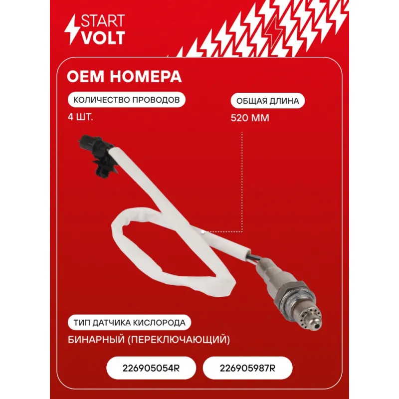 Датчик кислорода для автомобилей Renault Sandero Stepway (14-) 1.6i после катализатора Характеристики: Артикул: VS-OS 0906 OEM номера: 226905054R, 226905987R, 0 258 030 00L, 0 258 030 530, 0 258 030 00J Количество на автомобиль: 1 Подходящий разъем AIRLINE:: AECC283, AECC257, AECC025 Тип датчика кислорода: Бинарный (переключающий) Общая длина, мм: 520 Количество проводов: 4 Подходит для авто: Renault Fluence (10-), Sandero II (14-) Для проверки применяемости отправьте VIN автомобиля через вкладку "Есть вопросы о товаре?" Комплектация: Датчик кислорода - 1 шт Паспорт изделия/гарантийный талон - 1 шт Гарантия: от 1 года.