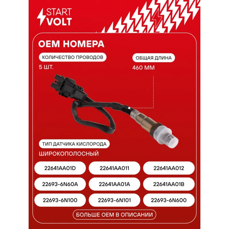 Датчик кислорода для автомобилей Subaru Forester (97-)/Legacy (-98)/Impreza (00-) 2.5i до катализатора Характеристики: Артикул: VS-OS 2212 OEM номера: 22693-6N100, 22693-6N101, 22693-6N600, 22693-6N60A, 22641AA01A, 22641AA01B, 22641AA01D, 22641AA011, 22641AA012, 22791AA00A, 0 258 007 081, 0 258 007 018 Количество на автомобиль: 1 Тип датчика кислорода: Широкополосный Общая длина, мм: 460 Количество проводов: 5 Подходит для авто: Subaru Forester SF (97-), Impreza G11 (00-), Legacy B12 (98-) Для проверки применяемости отправьте VIN автомобиля через вкладку "Есть вопросы о товаре?" Комплектация: Датчик кислорода - 1 шт Паспорт изделия/гарантийный талон - 1 шт Гарантия: от 1 года.