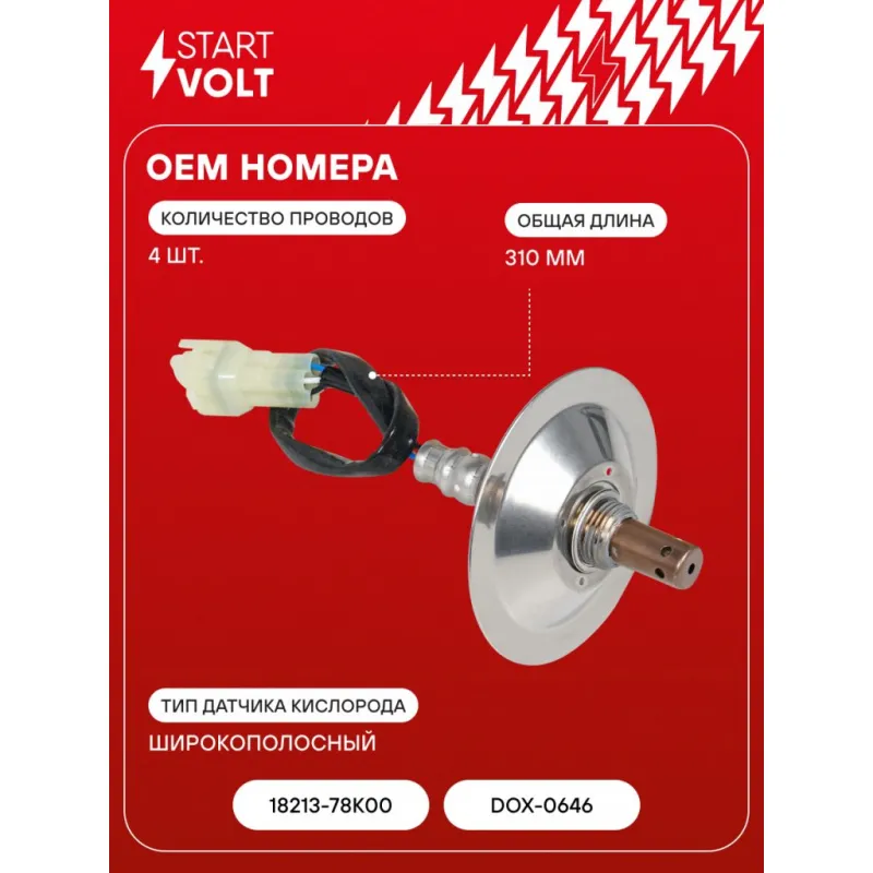 Датчик кислорода для автомобилей Suzuki Grand Vitara (05-) 2.4i до катализатора Характеристики: Артикул: VS-OS 2402 OEM номера: 18213-78K00, DOX-0646 Количество на автомобиль: 1 Тип датчика кислорода: Широкополосный Общая длина, мм: 310 Количество проводов: 4 Подходит для авто: Suzuki Grand Vitara (05-) Для проверки применяемости отправьте VIN автомобиля через вкладку "Есть вопросы о товаре?" Комплектация: Датчик кислорода - 1 шт Паспорт изделия/гарантийный талон - 1 шт Гарантия: от 1 года.