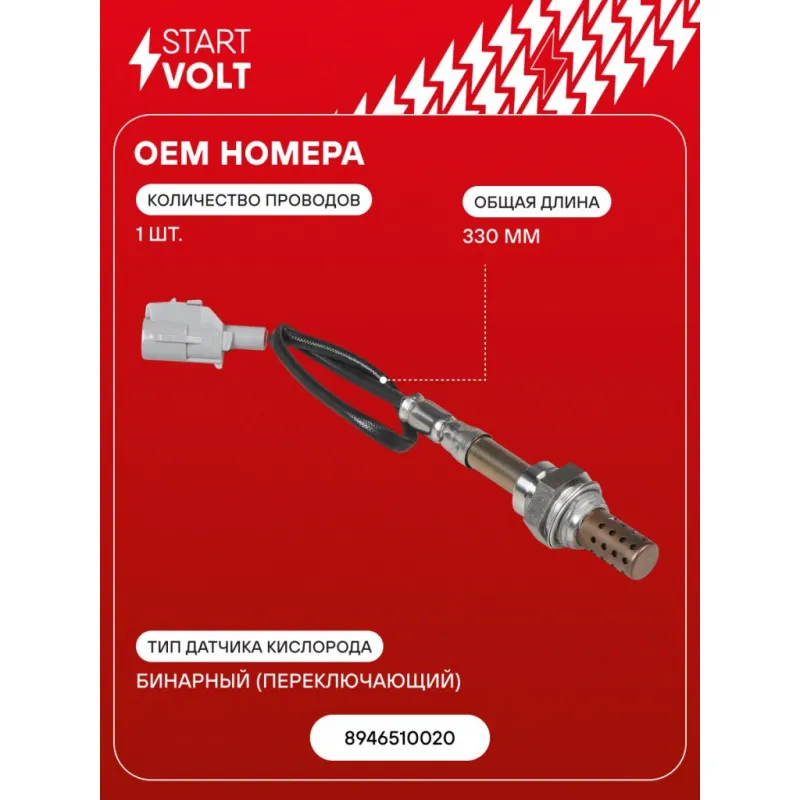 Датчик кислорода для автомобилей Toyota Corolla (91-)/Caldina (92-) 1.5i до катализатора Характеристики: Артикул: VS-OS 2905 OEM номера: 8946510020 Общая длина, мм: 330 Количество проводов: 1 Тип датчика кислорода: Бинарный (переключающий) Количество на автомобиль: 1 Подходит для авто: Toyota Corolla E100 (91-), Caldina I T190 (92-) Для проверки применяемости отправьте VIN автомобиля через вкладку "Есть вопросы о товаре?" Комплектация: Датчик кислорода - 1 шт Паспорт изделия/гарантийный талон - 1 шт Гарантия: от 1 года.
