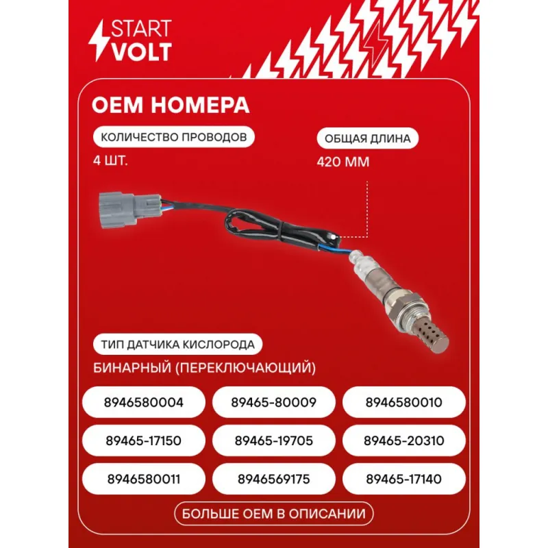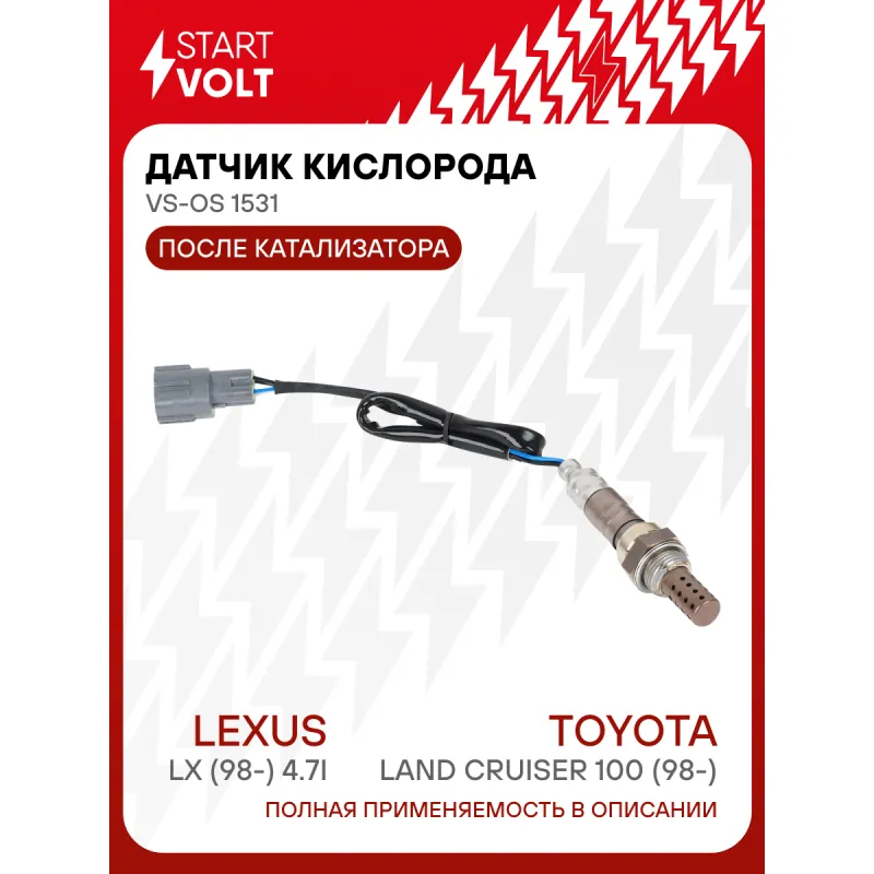 Датчик кислорода для автомобилей Toyota Land Cruiser 100 (98-)/Lexus LX (98-) 4.7i после катализатора Характеристики: Артикул: VS-OS 1531 OEM номера: 8946580011, 8946569175, 89465-17140, 89465-17150, 89465-19705, 89465-20310, 8946580004, 89465-80009, 8946580010, 89465-80028, 8946580031, 8946539855, 8946539885, 89465-43010, 8946552130, 89465-60160, 89465-80001, 89465-35340, 8946535380, 89465-35390, 89465-37030, 8946539655, 8946539755, 89465-20540, 89465-22240, 89465-26060, 8946529715, 8946529815, 8946529825, DOX0226 Общая длина, мм: 420 Количество проводов: 4 Тип датчика кислорода: Бинарный (переключающий) Количество на автомобиль: 1 Комплектация: Паспорт изделия/гарантийный талон - 1 шт Металлический фланец - 1 шт Датчик кислорода - 1 шт Уплотнительная прокладка - 1 шт Гарантия: от 1 года.